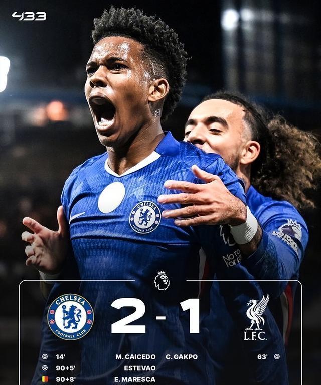 北京时间10月5日0点30分,25-26赛季英超第7轮迎来红蓝大战,切尔西坐镇斯坦福桥迎战利物浦。当主裁判吹响终场哨,斯坦福桥球场的欢呼声仿佛能掀翻顶棚,18岁巴西天才埃斯特旺第95分钟绝杀,切尔西2-1笑到最后,利物浦遭遇3连败让出榜首!蓝军切尔西开局以来表现尚可,此前欧冠1-0小胜穆里尼奥执教的本菲卡,力求打破英超2连败。利物浦原本有个梦幻开局,但此前接连不敌水晶宫和加拉塔萨雷。切尔西此战有部分位置轮换,若昂-佩德罗单箭头,身后是内托、恩佐和加纳乔。利物浦尽可能派上常规主力,伊萨克突前,与加克波、索博斯洛伊和萨拉赫组成进攻群,两队光是首发球员身价就达到了15.4亿欧元!比赛开始后,近期状态低迷的利物浦便暴露隐患。上半场红军仅完成2次射门,而中场重要防线出现的空档,成为了切尔西的破局点!第14分钟,库库雷利亚中圈分球,古斯托送出传球,凯塞多大禁区外一记劲射破门,球如炮弹般攻入网中,1-0!第39分钟,场上出现争议一幕,加纳乔带球至对手禁区内,索博斯洛伊对抗致其倒地,疑似有个推人动作,主裁判安东尼-泰勒示意没有点球!下半场易边再战,利物浦主帅斯洛特果断换人调整,换下右后卫布拉德利,状态堪忧的维尔茨替补登场。来到第63分钟,索博斯洛伊右侧传中,伊萨克轻巧做球,加克波跟进破门,将比分扳为1-1!利物浦扳平后试图掌控节奏,但切尔西的攻势不在其下,凯塞多的远射被门将托出横梁,恩佐的头球攻门击中立柱。伤病成为了切尔西的意外考验,巴迪亚西勒与阿昌庞先后伤退,两名首发中后卫接连离场,换上中场拉维亚和边后卫哈托。蓝军主帅马雷斯卡临危不惧,第75分钟的关键换人成为胜负手,18岁巴西天才埃斯特旺替补上阵!下半场补时第5分钟,库库雷利亚左侧传中,埃斯特旺跟进抢在罗伯逊前铲射得分,斯坦福桥瞬间沸腾了,切尔西2-1绝杀!进球后后不久,蓝军主帅马雷斯卡因累计黄牌被罚出场,而比赛胜负已然敲定。全场战罢,切尔西主场2-1绝杀上赛季英超冠军,成功赢得这场焦点红蓝大战,7轮积11分位列联赛第6!利物浦7轮积15分降至第2,仅次于积16分的阿森纳。18岁的埃斯特旺成为了切尔西的制胜功臣,攻入加盟俱乐部后的首粒进球也是英超赛场的首粒进球,这位身价6000万欧元的巴西天才大有可为!利物浦赛季初连续6场绝杀取胜,令多少球迷惊讶佩服,但如今连续2场英超被绝杀,斯洛特遭遇了教练生涯首次3连败,只能说该来的总会来的。经过此战,切尔西成功进一步提升士气,而利物浦暴露了防线上的漏洞与新援仍欠磨合进攻效率不足的问题,今夏1.25亿欧元引进的维尔茨目前成为了英超007,7轮比赛0进球0助攻!当18岁的巴西天才埃斯特旺与队友相拥庆祝,斯坦福桥的夜空仿佛被蓝色点亮。库库雷利亚与凯塞多踢出精彩表现,埃斯特旺斩获蓝军处子球,足以让切尔西球迷看到了在英超积分榜上更进一步的希望!对于切尔西2-1绝杀利物浦,球迷们有何看法呢?