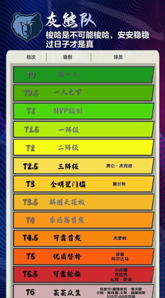 37. 灰熊的建队理念尤其适合小球市环境。无需与洛杉矶、纽约等大城市比拼财力,通过系统化培养新人,照样能维持联盟中的竞争力。多年来,他们在同类城市球队中堪称典范。38. 并非每支球队都必须年年喊出夺冠口号。安守本分,稳步前行,也是一种值得尊重的发展方式。39. “梭哈式”建队如同赌博,赢则登顶,输则重建。对于灰熊这样地处普通城市的队伍而言,与其把命运交给一次豪赌,不如脚踏实地走好每一步。