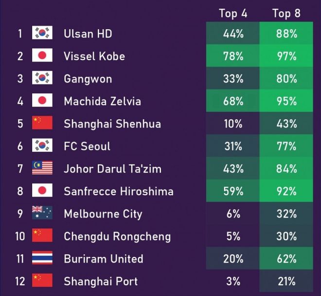 从晋级概率的排名上来看,墨尔本城晋级的概率也只有32%,按照晋级概率的排名,“3中超+1澳超”球队将最终处在后4名被淘汰出局。中超3队全部出局是对中国足球现状最直观的反映。如果中超球队不能在接下来的比赛中摆正态度,或者足协根据亚冠比赛调整中超赛程,那么中超球队在亚冠赛场将毫无作为。