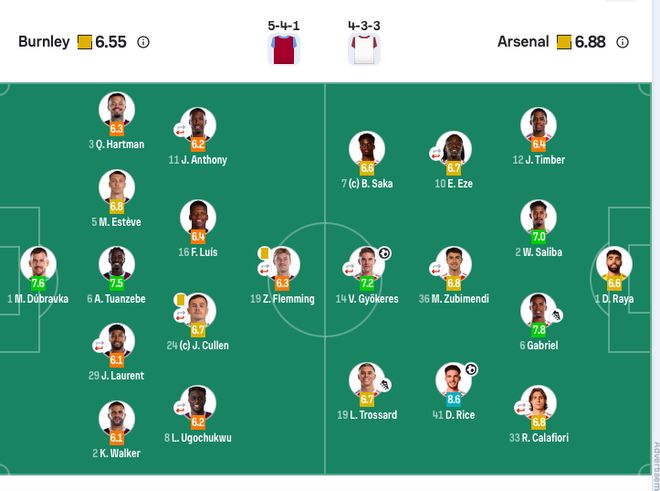 【出场阵容】阿森纳首发:1-拉亚、12-廷伯、2-萨利巴、6-加布里埃尔、33-卡拉菲奥里(72’5-因卡皮耶、)、41-赖斯、36-苏维门迪(76’16-诺尔高)、10-埃泽(72’22-恩瓦内里)、7-萨卡、19-特罗萨德、14-约克雷斯(46’23-梅里诺)。阿森纳替补:13-凯帕、3-莫斯克拉、4-本·怀特、49-斯凯利、56-道曼。伯恩利首发:1-杜布拉夫卡、2-沃克、3-哈特曼、5-艾斯特福、6-图安泽贝、8-乌戈丘库(62’17-查奥纳)、16-弗洛伦蒂诺、24-库伦(82’10-爱德华兹)、29-劳伦特(76’28-汉尼拔)、11-杰顿·安东尼(62’7-布鲁恩·拉尔森)、19-弗勒明(76’27-布罗亚)。伯恩利替补:13-韦斯、18-埃克达尔、23-皮雷斯、35-阿什利·巴恩斯。相关资讯