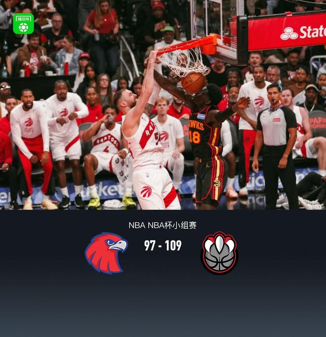 北京时间11月8日NBA NBA杯小组赛,亚特兰大老鹰对阵多伦多猛龙。半场老鹰53-44猛龙,第四节猛龙打出36-20的单节得分直接打崩老鹰,最终老鹰97-109惨遭猛龙逆转。亚特兰大老鹰杰伦-约翰逊21分7板4助,亚历山大-沃克20分2板3助;多伦多猛龙英格拉姆20分6板4助,RJ-巴雷特19分5板4助。赛况第一节老鹰杰伦-约翰逊拿下8分,猛龙英格拉姆拿下10分,首节战罢老鹰26-26猛龙第二节老鹰里萨谢拿下10分,猛龙英格拉姆拿下4分,半场结束老鹰53-44领先猛龙第三节老鹰杰伦-约翰逊拿下8分,猛龙RJ-巴雷特拿下7分,第三节结束老鹰77-73领先猛龙第四节老鹰波尔津吉斯拿下10分,猛龙RJ-巴雷特拿下10分,最终老鹰97-109不敌猛龙球员全场数据亚特兰大老鹰杰伦-约翰逊21分7板4助1断,亚历山大-沃克20分2板3助,波尔津吉斯17分7板3助3帽;多伦多猛龙英格拉姆20分6板4助1断1帽,RJ-巴雷特19分5板4助,奎克利18分5板6助3断。首发阵容亚特兰大老鹰:杰伦-约翰逊,亚历山大-沃克,波尔津吉斯,里萨谢,戴森-丹尼尔斯;多伦多猛龙:英格拉姆,RJ-巴雷特,奎克利,斯科蒂-巴恩斯,珀尔特尔。相关资讯