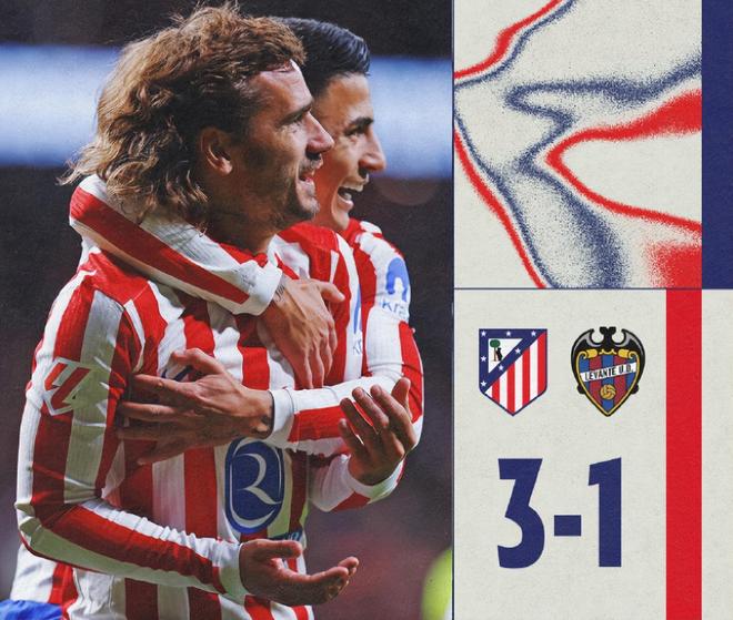 主场面对莱万特,马竞上半场开局不错,依靠一个乌龙球先下一城,随后马努-桑切斯头球破旧主,比分1-1扳平。下半场,替补出战的格列兹曼短短19分钟完成梅开二度,帮助马竞3-1再度领先,这个比分也保持到比赛结束。据统计,格列兹曼已在西甲联赛打进201球,成为历史第11人。相关资讯