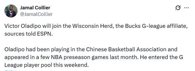 这位两次入选全明星的球员,职业生涯因一系列腿部伤病陷入低谷,但他在季前赛中面对NBA球员表现不俗。他场均上场27.9分钟,贡献19.3分、3.0次助攻、2.0个篮板和2.7次抢断,投篮命中率为46.7%、三分命中率25.0%、罚球命中率92.3%。今年夏天,奥拉迪波在拉斯维加斯为多支NBA球队进行了试训,但并未达成签约。据悉,欧洲球队的代表也出席了他的试训,不过这位昔日的榜眼秀上个月表示,他并未认真考虑海外打球的可能。