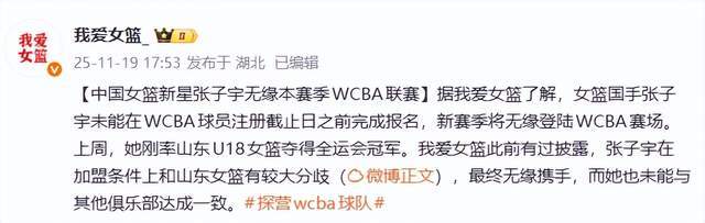 张子宇是中国女篮的内线新星,被宫鲁鸣寄予厚望,破格提拔她进入国家队,跟随球队征战亚洲杯,拿到了第三名。张子宇拥有2米26的身高,是内线不得多得的人才,只要能在篮下把球传到她手中,闭着眼都能把球搁进球。前些日子,全运会上,张子宇就代表山东U18女篮,一路高歌,斩获了金牌,她自己更是投出了九成以上的命中率,简直就是巨大BUG。之前有消息说,山东高速女篮正在和张子宇谈判,希望她能加入山东高速女篮,新赛季开始代表山东出战WCBA。可惜的是,根据我爱女篮的报道,张子宇与山东高速女篮的谈判未能达成一致,以至于张子宇错过了11月18日的球员注册日,使得张子宇将会无缘新赛季的WCBA联赛。