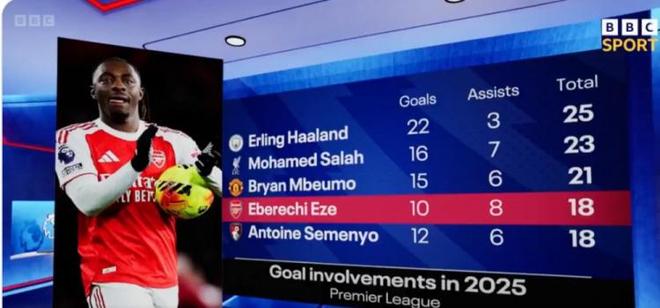 1-阿森纳 1.442-曼城 4.333-切尔西 15有球迷在社交媒体上调侃阿森纳球迷摩根:“我记得你喊过阿尔特塔下课(out)。”摩根回复道:“我也记得,不会再喊了。”消息来源:数据机构2 - 他是阿森纳的主导英超第12轮比赛,埃泽上演帽子戏法,阿森纳主场4-1击败热刺。据BBC统计,埃泽今年英超参与18粒进球,仅少于哈兰德、萨拉赫、姆伯莫。