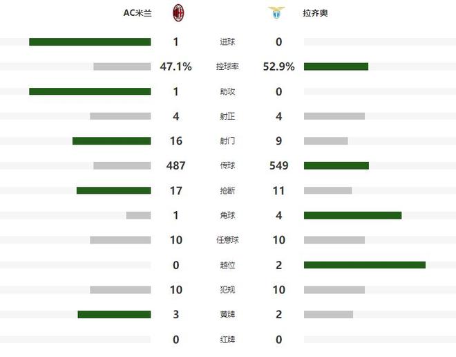 比赛开打之后,拉齐奥就反客为主,在圣西罗球场压制住了AC米兰,第3分钟希拉接到队友开出的前场定位球后,禁区内完成了一记近在咫尺的头球攻门,迈尼昂做出神扑,皮球随后击中门框后出了底线。第31分钟扎卡尼一个假动作虚晃就过得了米兰防守球员,随后在左路小角度打门,又被迈尼昂倒地化解,半场比赛结束之前,米兰左路下底传中,后点包抄的托莫里,接到队友 头球摆渡后,直接凌空抽射,可惜没有能够命中目标。