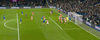 13’赖斯大力手抛球被解围后,埃泽传至右侧空当,萨卡低射被罗伯特·桑切斯用腿挡出。