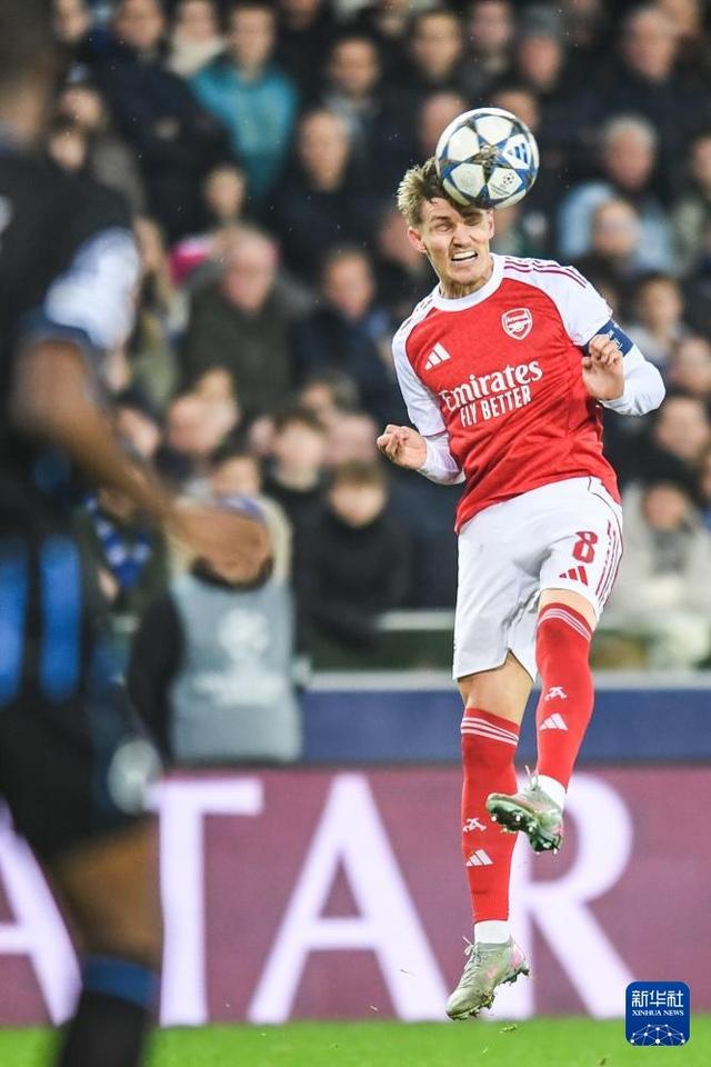 12月10日,阿森纳队球员厄德高在比赛中头球。新华社记者 彭子洋 摄
