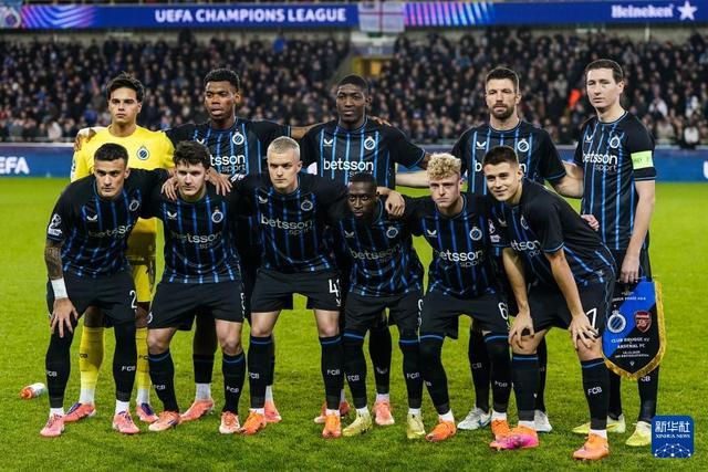 12月10日,布鲁日队首发球员在比赛前合影。新华社记者 彭子洋 摄