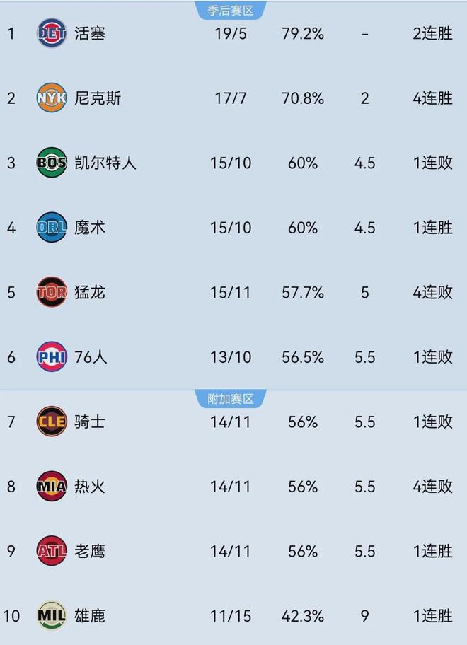 东部排在凯尔特人前面的队伍,只有19胜5负的活塞以及17胜7负的尼克斯,这两队还准备在接下来的交易市场大展拳脚,都想明年去总决赛舞台释放天赋与西部豪强一决高下。