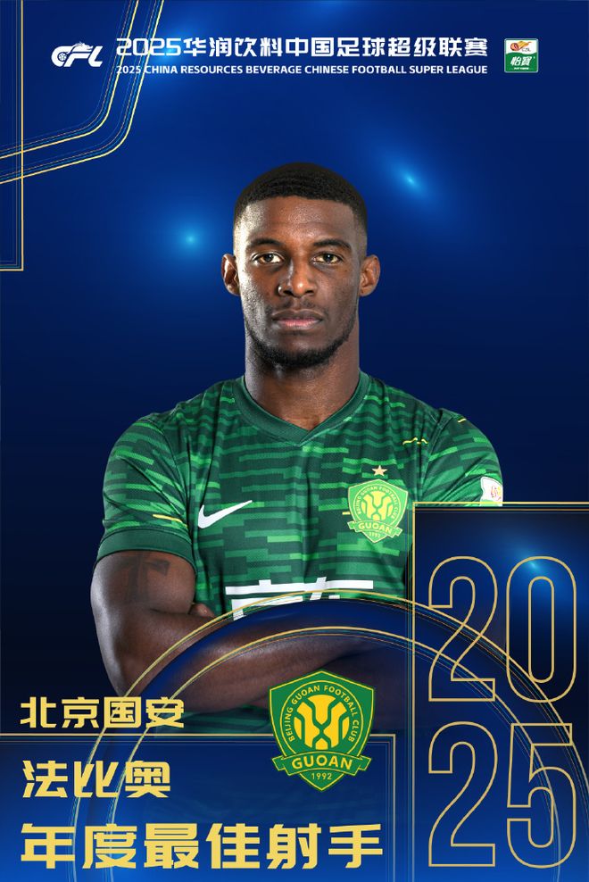 年度最佳射手:法比奥(北京国安)2025赛季,32岁的法比奥30场中超全部首发,贡献28球4助,以1球的优势力压卡扎伊什维利,生涯首次斩获中超金靴。法比奥也帮助国安最终位列中超积分榜第4名,并且随队斩获足协杯冠军。