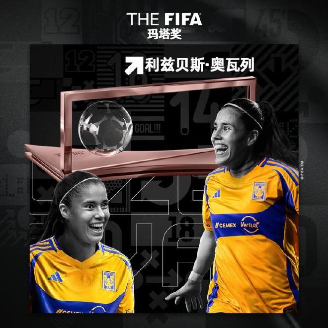 玛塔奖(女足最佳进球):利兹贝斯·奥瓦列莉兹贝斯·奥瓦列在代表球队对阵瓜达拉哈拉女足时,打进一粒“反向蝎子摆尾”进球。