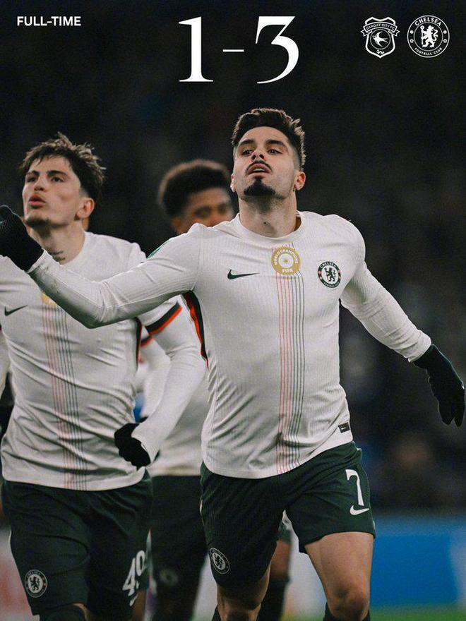马雷斯卡的中场调整成为比赛转折点,加纳乔与若昂・佩德罗的登场瞬间激活球队,切尔西下半场的预期进球值飙升至2.57,与上半场形成天壤之别。第57分钟,卡迪夫城中卫劳勒出球失误,博纳诺特断球后精准分边,此前错失单刀的加纳乔冷静推射破门,为蓝军打破僵局。面对切尔西的攻势,卡迪夫城并未退缩。第74分钟,恩格右路传中精准找到后点,特恩布尔鱼跃头球破门扳平比分,主场球迷的欢呼声险些掀翻球场顶棚。但豪门的阵容深度终究显现威力,第82分钟,桑托斯助攻内托打出一记贴地斩,皮球直窜远角入网;补时阶段,佩德罗挑传助攻加纳乔小角度破门完成双响,彻底锁定胜局。此役切尔西的核心在于替补席的绝对实力,加纳乔替补登场52分钟完成5次射门、3次射正、2粒进球,外加100%传球成功率的完美表现,以9.3分成为全场最佳;内托则延续联赛杯火热状态,本赛季已斩获3粒杯赛进球,成为球队杯赛头号射手。更值得关注的是,切尔西本赛季联赛杯6个进球全部由21岁及以下球员攻入,年轻化战略成效显著。