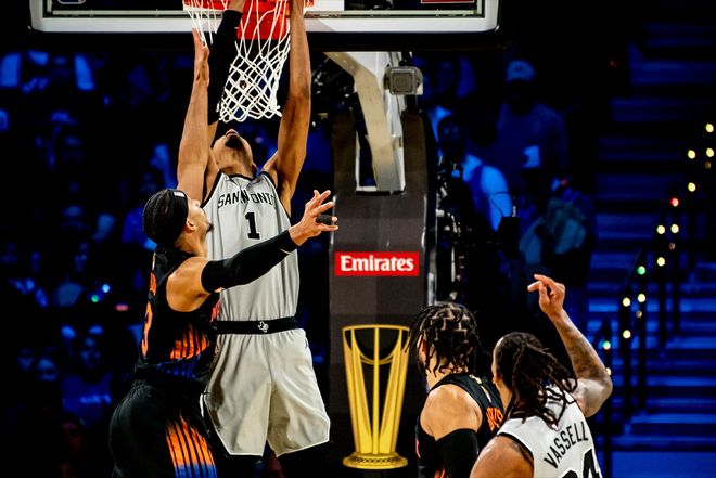 一时间,马刺队慌了。而且随着阿奴诺比在关键时刻扔进底角三分后,马刺这群年轻人经验不足的缺点就暴露了,各种失误。而这场比赛,也就此盖棺定论了。最终,尼克斯124-113战胜马刺队,夺得本届NBA杯赛冠军!尼克斯那边阿奴诺比28+9,布伦森25+8,唐斯16+11,米罗更是有15个篮板球。如此一来,时隔52年,尼克斯再次捧起冠军奖杯。虽然不是总决赛奖杯,但NBA杯冠军也是冠军,在球员和媒体眼中也有着不俗的含金量。而且,这座奖杯也足以给这座城市带来新的希望,去冲击今年的NBA奥布莱恩奖杯。