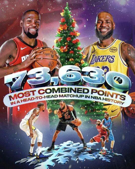 杜兰特对詹姆斯,就像库里对詹姆斯, 不管是圣诞大战还是揭幕战,都是万众瞩目的重中之重。杜兰特生涯得分为31201!詹姆斯生涯得分为42429分!73630分!这是俩人生涯常规赛总得分之和大小王争了十多年了,大小王都开始下山了,且看且珍惜!