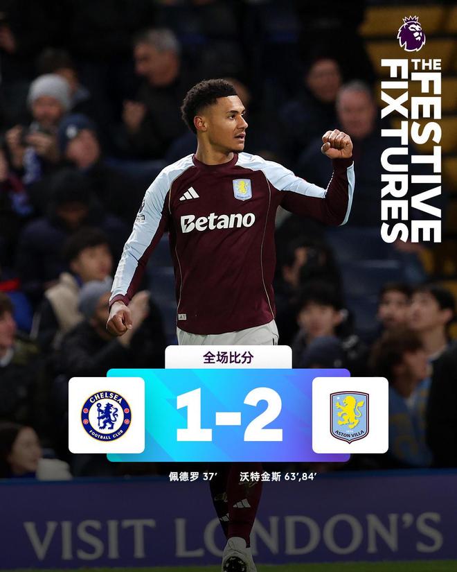 第84分钟,阿斯顿维拉右侧角球机会,沃特金斯甩头攻门完成梅开二度,帮助维拉以2-1逆转取胜。赢下本场比赛后,阿斯顿维拉近13轮联赛取得12胜,豪取8连胜,可谓风头正劲,切尔西则遭遇了两轮不胜。