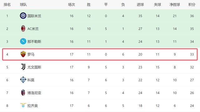 本赛季,罗马无疑是意甲大黑马之一,如今赛季即将半程,他们依然咬住了榜首的对手。但是遗憾的是,罗马之前对阵国米(主场0-1)、AC米兰(客场0-1)、那不勒斯(主场0-1)和尤文(客场1-2)4大强队,遭遇全败。很显然,以罗马的实力,根本不足以和这些对手争冠。事实上,罗马之所以现在还能排名前四,除了他们对阵中下游球队表现稳定之外,也跟榜首几支强队起伏有很大的关系,因为多线作战,本赛季无论国米、AC米兰、那不勒斯还是尤文,都输掉了很多不应该输的比赛,因此意甲积分榜才如此胶着。不过哪怕如此,罗马依然没有能力撼动这些强队。不出意外的话,罗马本赛季别说争冠,他们连争四的目标,都不一定能实现!