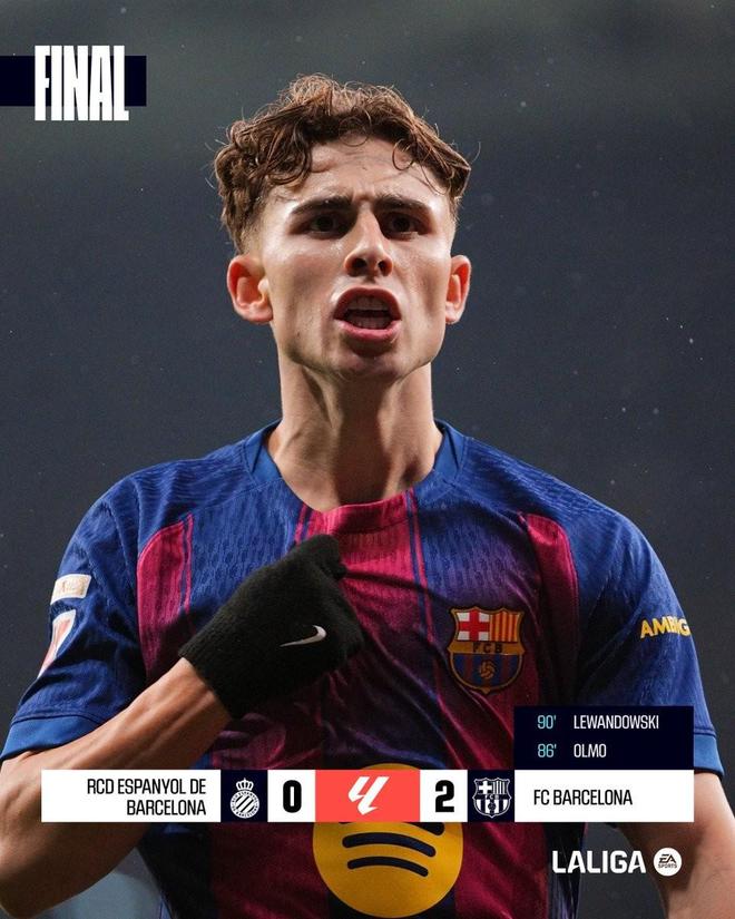 此役客场对阵西班牙人,巴萨凭借替补登场的奥尔莫和莱万各入一球,以2-0的比分击败对手。