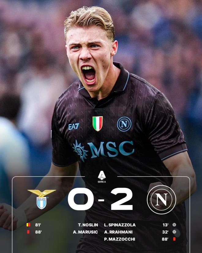 第31分钟,定位球战术奏效,拉赫马尼禁区内头球破门,将比分扩大为2-0。此后那不勒斯稳扎稳打,没有给拉齐奥任何反扑空间,最终在客场收获一场完胜,迎来2026年的开门红,同时豪取各项赛事4连胜。