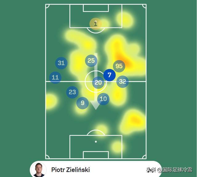这一战泽林斯基的位置其实相对比较靠后,拼抢力度也很大(他头上脚下有7次一对一对抗,这远超他日常的场次),但真正出现机会后,泽林一锤定音的能力,确实在国米这批中场球员中属于顶尖水平。
