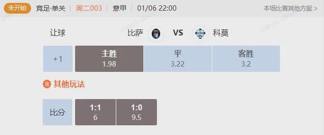 竞足 周二003 意甲比萨VS科莫