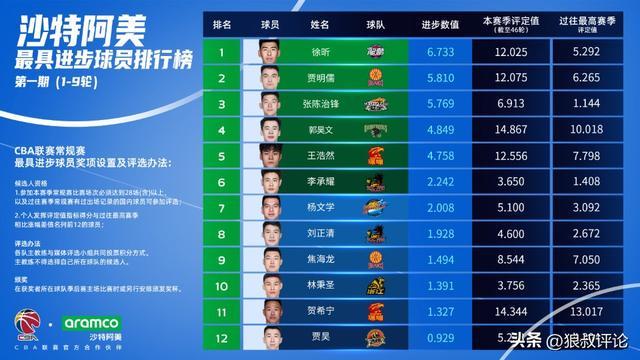 北京时间1月8日,根据CBA官方的公示,2025-2026赛季CBA联赛第1-9轮最具进步球员,广州龙狮球员徐昕排在第一。