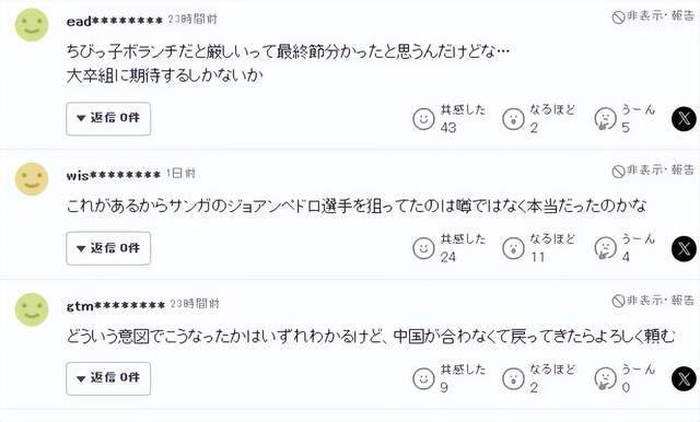 还有不少球迷感慨:当年在亚冠对中国球队踢得游刃有余,早就想到会有这么一天被中国球队看上,本来还想着他已经好不容易适应了日本联赛节奏,新赛季就能爆发,结果却走了。
