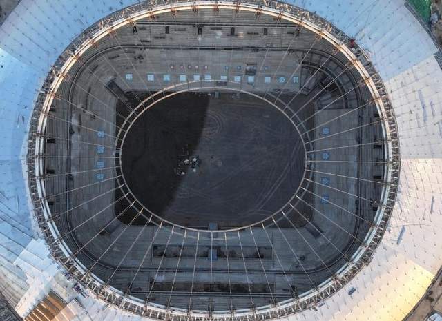 中超第11座专业足球场终于快要来了。在比原定日期推迟2年后,最近黄河体育中心足球场完成难度最大的天空骨架,也就是重达700吨的索桁架吊装,正式进入下一阶段施工。这也意味着,这座国内施工最复杂的专业足球场进展顺利,大概率明年就将成为山东泰山新的主场。