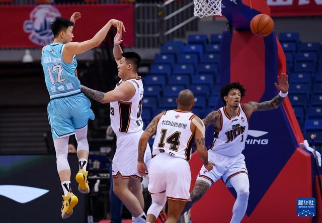 1月15日,吉林长白山恩都里队球员威尔逊(左二)在比赛中投篮。新华社记者 李紫恒 摄