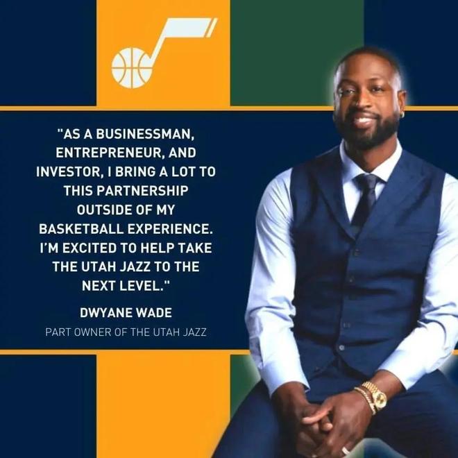 先说说韦德和爵士的这段缘分,其实这里面还有个小插曲。韦德刚退役的时候,满心都是篮球情怀,想收购自己效力多年的热火3%股份,结果被球队老板直接拒绝了。正当他这份篮球情结没处安放的时候,爵士大老板瑞安·史密斯主动抛来了橄榄枝。两人一聊就特别投缘,商业理念完全契合——史密斯看中的是韦德的全球影响力和商业头脑,能帮爵士提升品牌价值;韦德则是想以另一种身份留在篮球圈,延续自己的篮球事业。