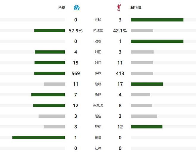 易边再战,马赛明显加强了进攻端的投入,第52分钟曼联旧将格林伍德连续完成了两脚极具威胁的打门,一次被阿利森神扑化解,一次被后卫用身体挡出底线,7分钟之后,利物浦给予强势回应,索博斯洛伊送出妙传,但埃基蒂克运气不佳,打门被立柱拒之门外。